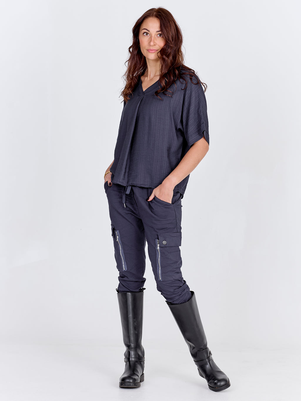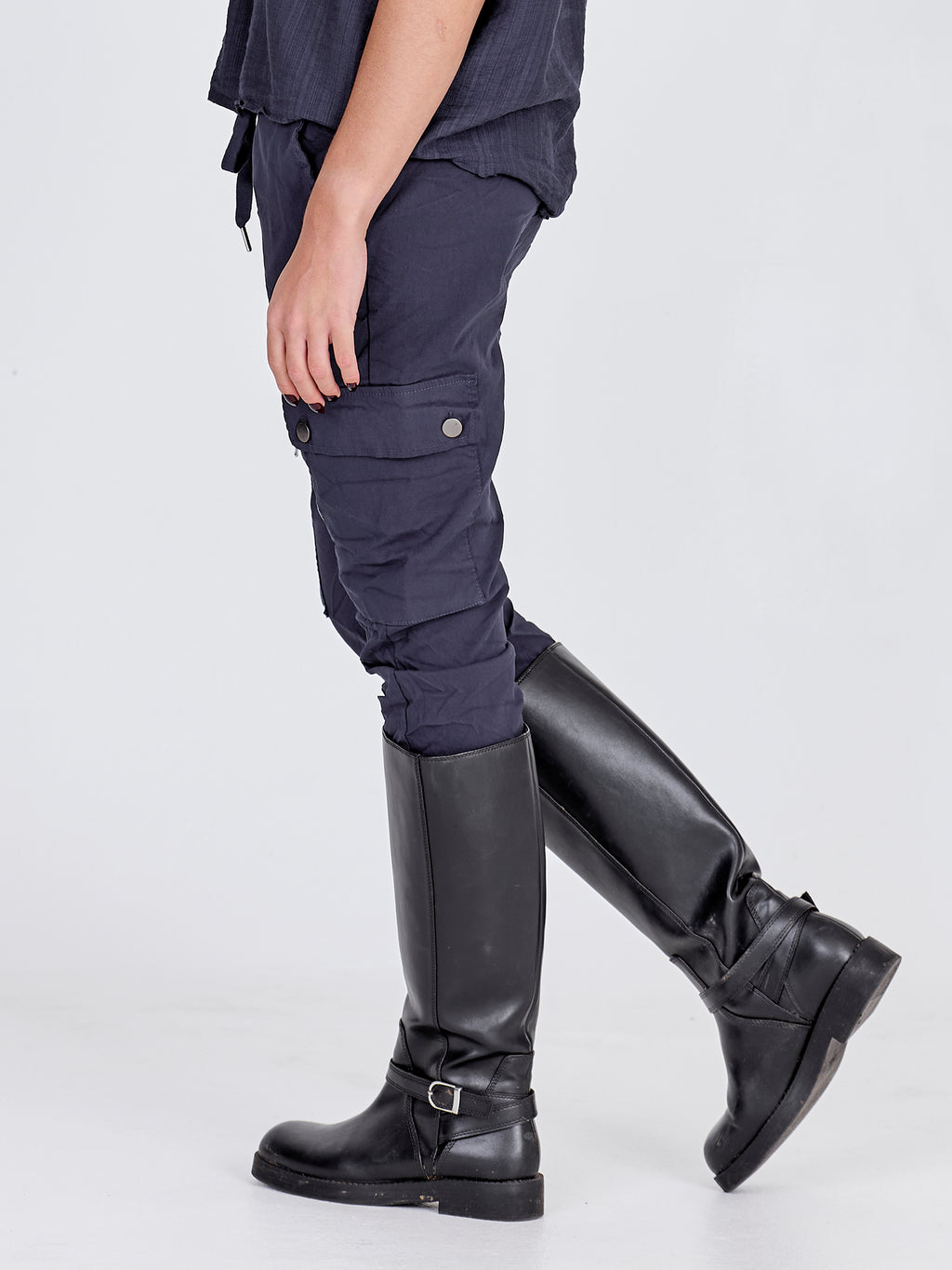 Vores populære Carmen-pasform er kendt for deres cargo design og behagelige komfort. Bukserne i Carmen-pasformen er i et ekstremt stretchy materiale, som sidder flot til i benene, og med en regulær, elastisk talje med bindebånd. Vælg din sædvanlige størrelse. Hvis du ønsker et mere tætsiddende fit kan du gå en størrelse ned, eller en størrelse op for et mere baggy fit.