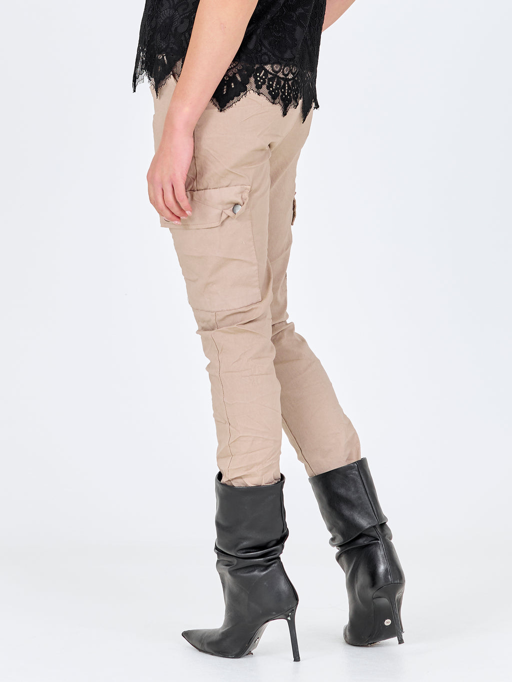 Vores populære Carmen-pasform er kendt for deres cargo design og behagelige komfort. Bukserne i Carmen-pasformen er i et ekstremt stretchy materiale, som sidder flot til i benene, og med en regulær, elastisk talje med bindebånd. Vælg din sædvanlige størrelse. Hvis du ønsker et mere tætsiddende fit kan du gå en størrelse ned, eller en størrelse op for et mere baggy fit.