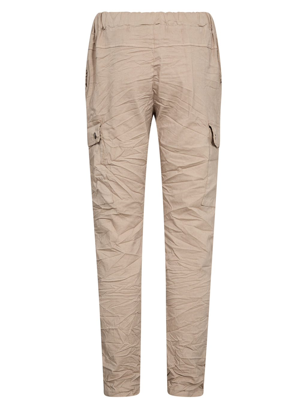 Disse cool bukser er i en lækker bomuldskvalitet med masser af stretch. Bukserne har en let baggy pasform og en elastisk talje med bindebånd, der sørger for en fantastisk komfort. Midt på bukserne er der to store lommer med knapper samt en lang pyntelynlås, som giver en rå detalje.