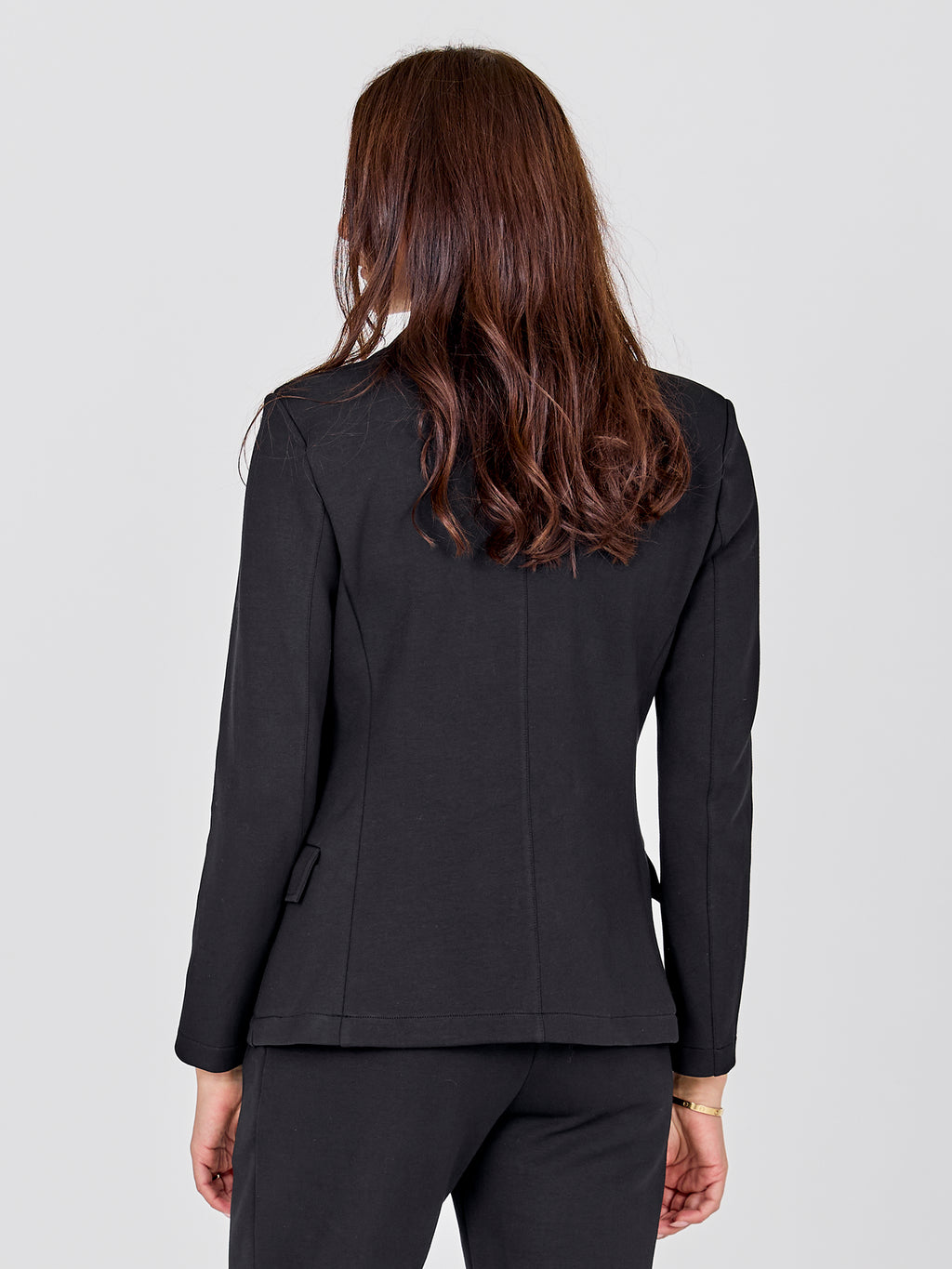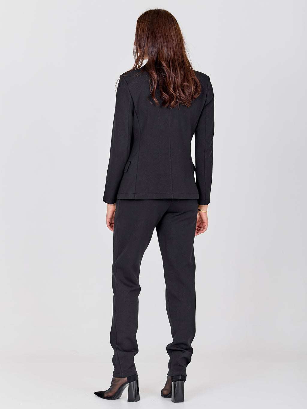 Denne blazer har et klassisk og enkelt udtryk med et let figursyet snit, der falder pænt på kroppen. Fronten er holdt ren med reverskrave og lukning fortil, mens bagsiden er enkel og giver et roligt helhedsindtryk. Pasformen gør den nem at bruge både lukket og åben, alt efter hvilket udtryk du ønsker. Style blazeren med de matchende bukser for et gennemført sæt, eller brug den over en top og jeans for et mere afslappet hverdagslook.