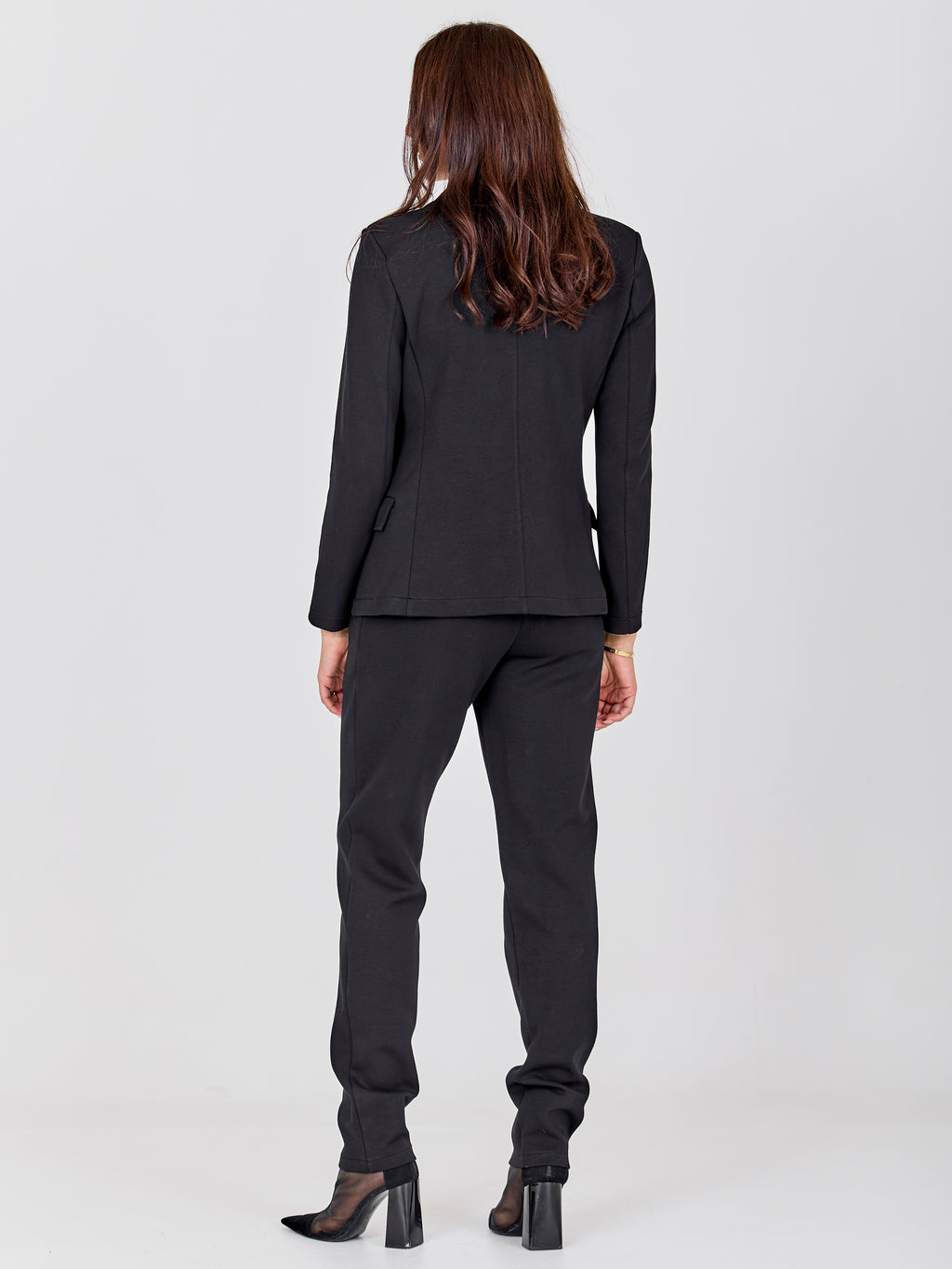 Disse bukser har et enkelt og velklædt udtryk med en lige pasform, der falder pænt langs benene. Fronten er rolig og klassisk, mens bagsiden følger samme rene linje og giver et ensartet look. Pasformen gør dem behagelige at have på hele dagen, samtidig med at de fungerer godt til mere formelle outfits. Style bukserne med den matchende blazer for et samlet sæt, eller brug dem med en bluse eller strik til hverdagsbrug.