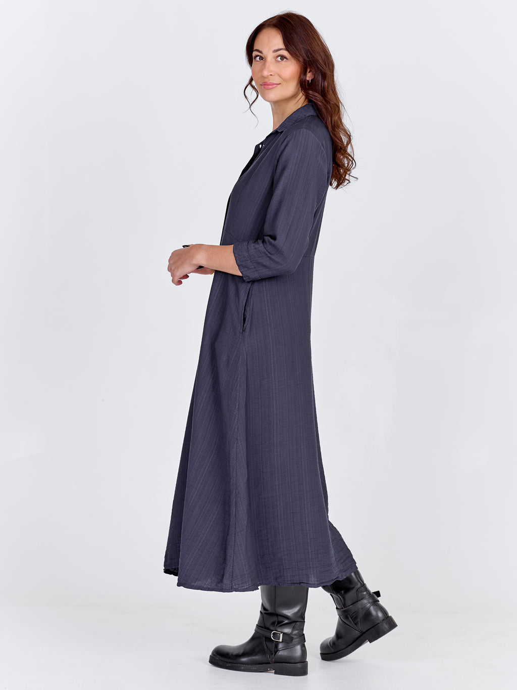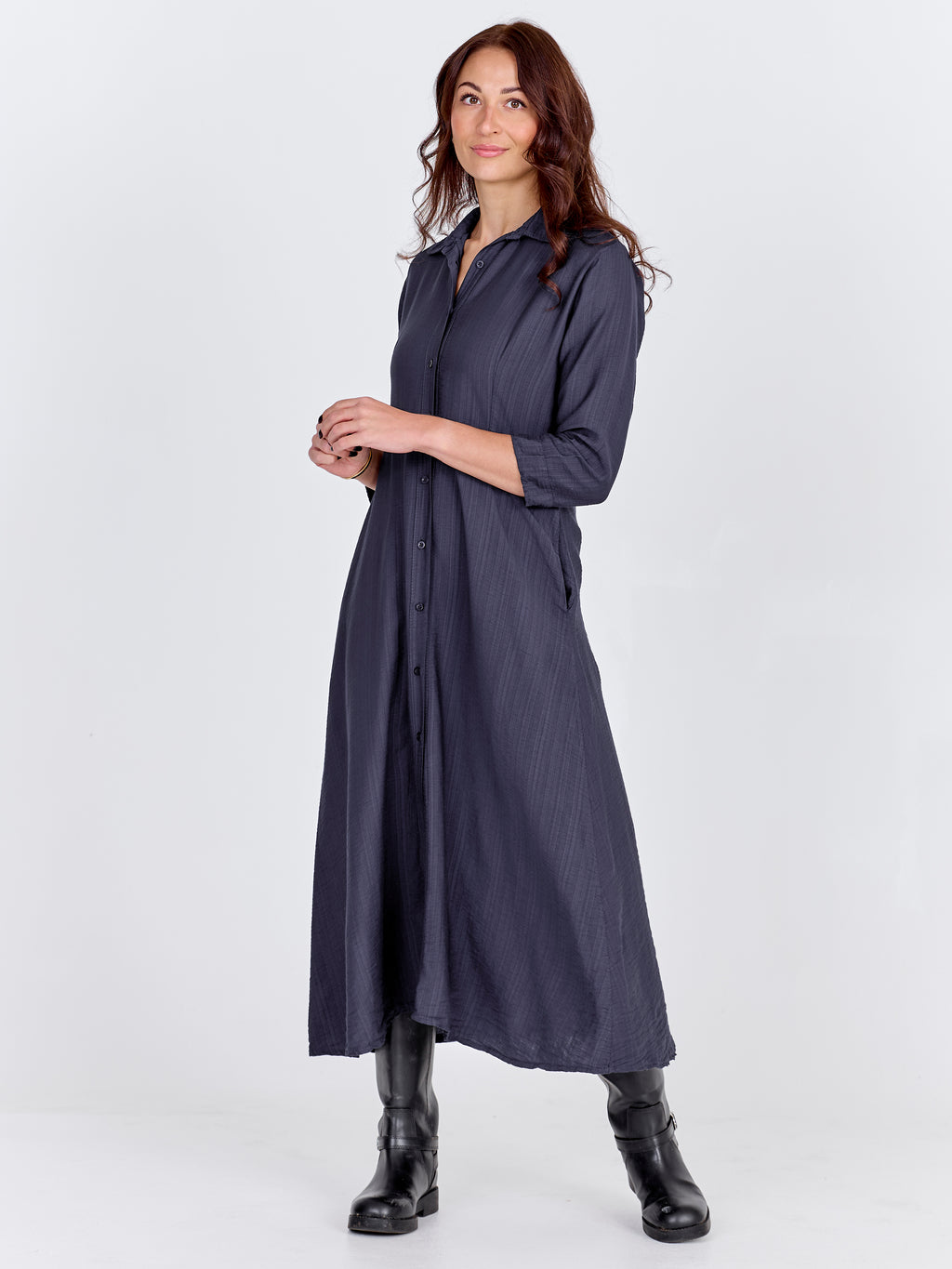 Classic shirt dress design with button-through front