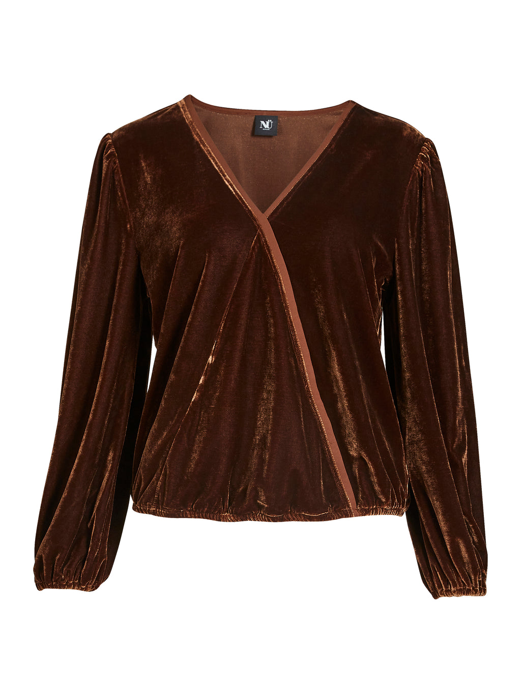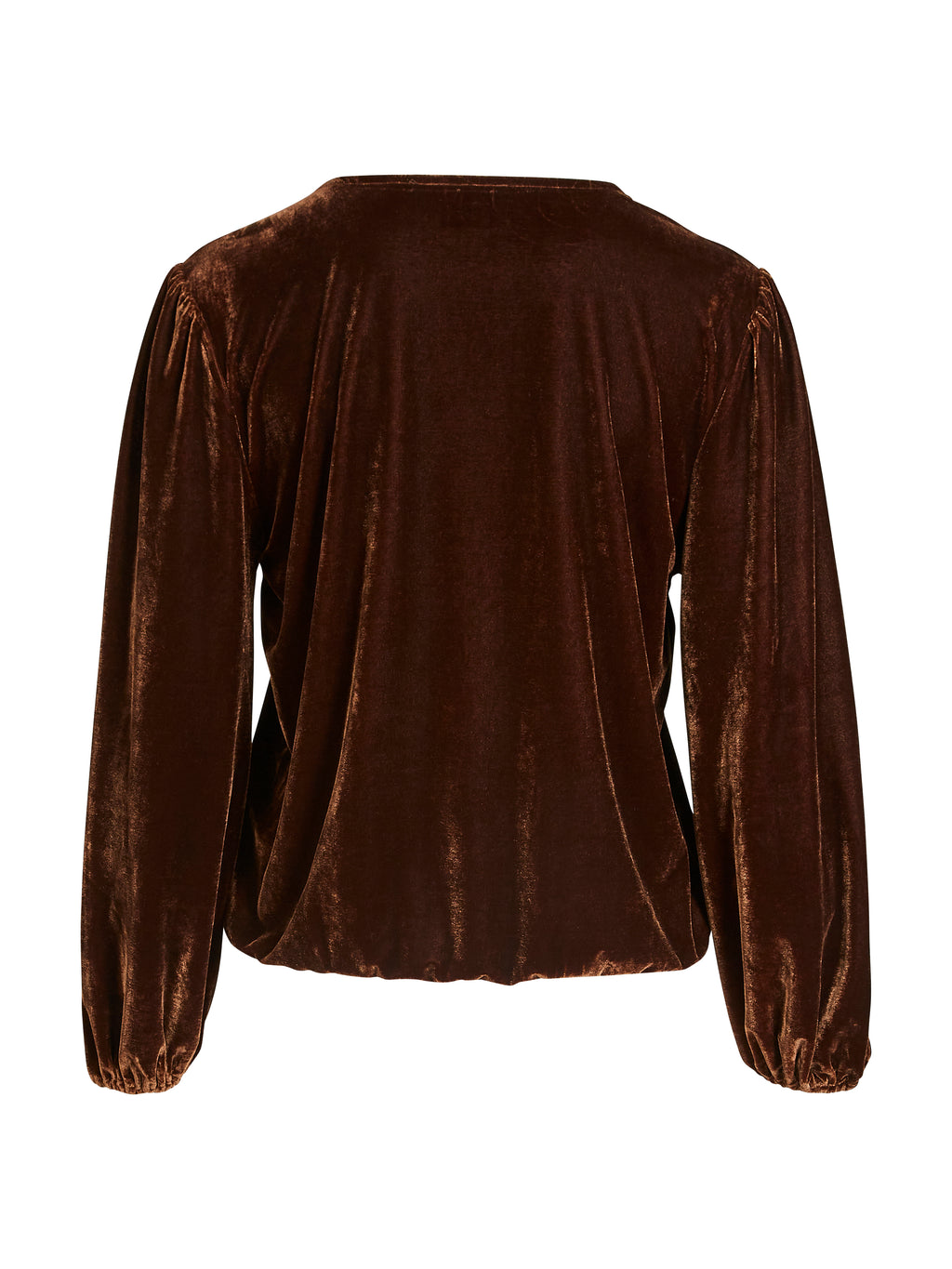 Denne slå-om bluse forener komfort og elegance med sit bløde, velourlignende materiale og flatterende design. Den har lange ærmer med elastik ved håndleddene og en dekorativ, asymmetrisk slå-om-effekt foran, der skaber en fin drapering over kroppen. Den brede elastik forneden sikrer en god pasform og et afrundet udtryk.