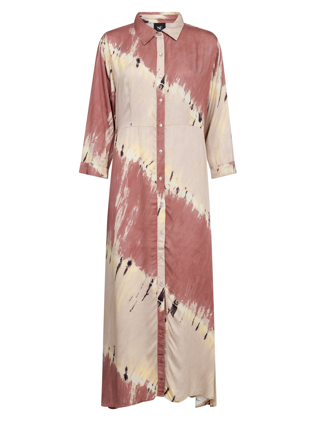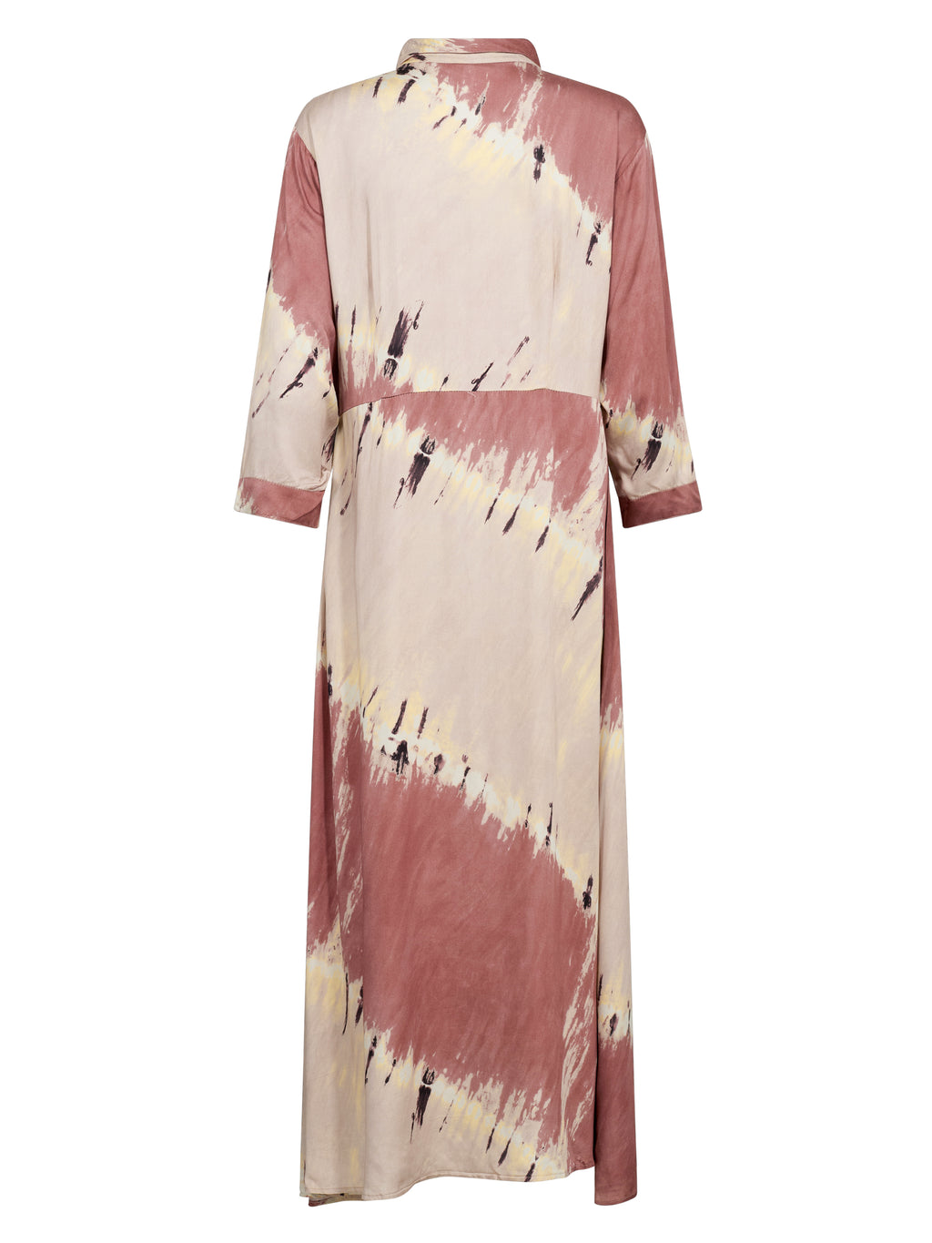 Denne kjole har et afslappet, men stilrent snit med gennemgående knaplukning og en let, lige pasform. De 3/4-lange ærmer giver et roligt udtryk, mens den lange længde gør kjolen nem at style både åben og lukket. Brug den alene som kjole eller åben over bukser og top for et mere lag-på-lag look.