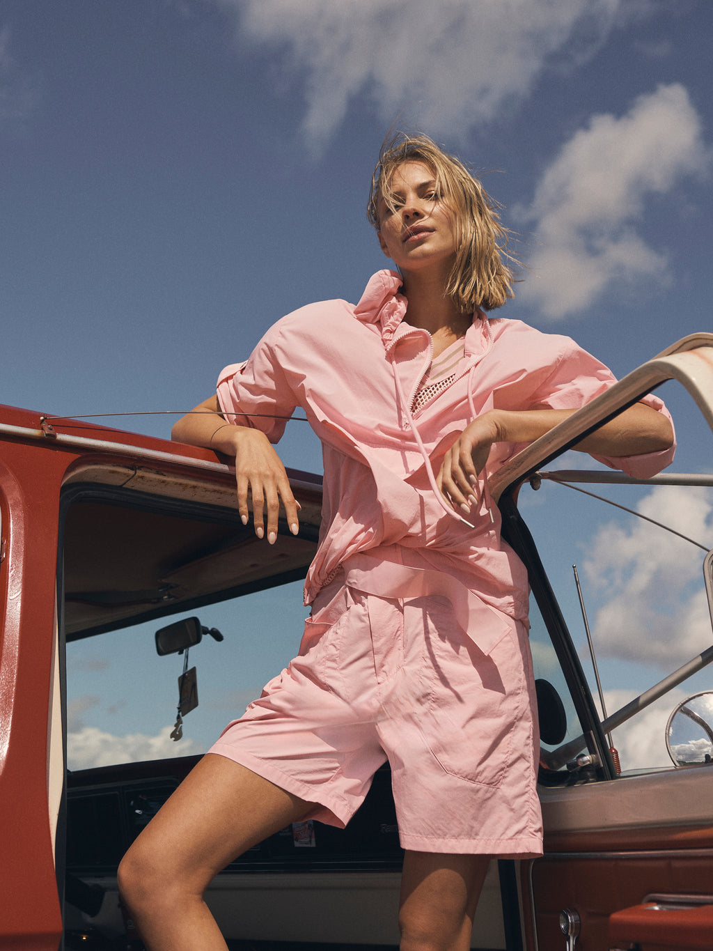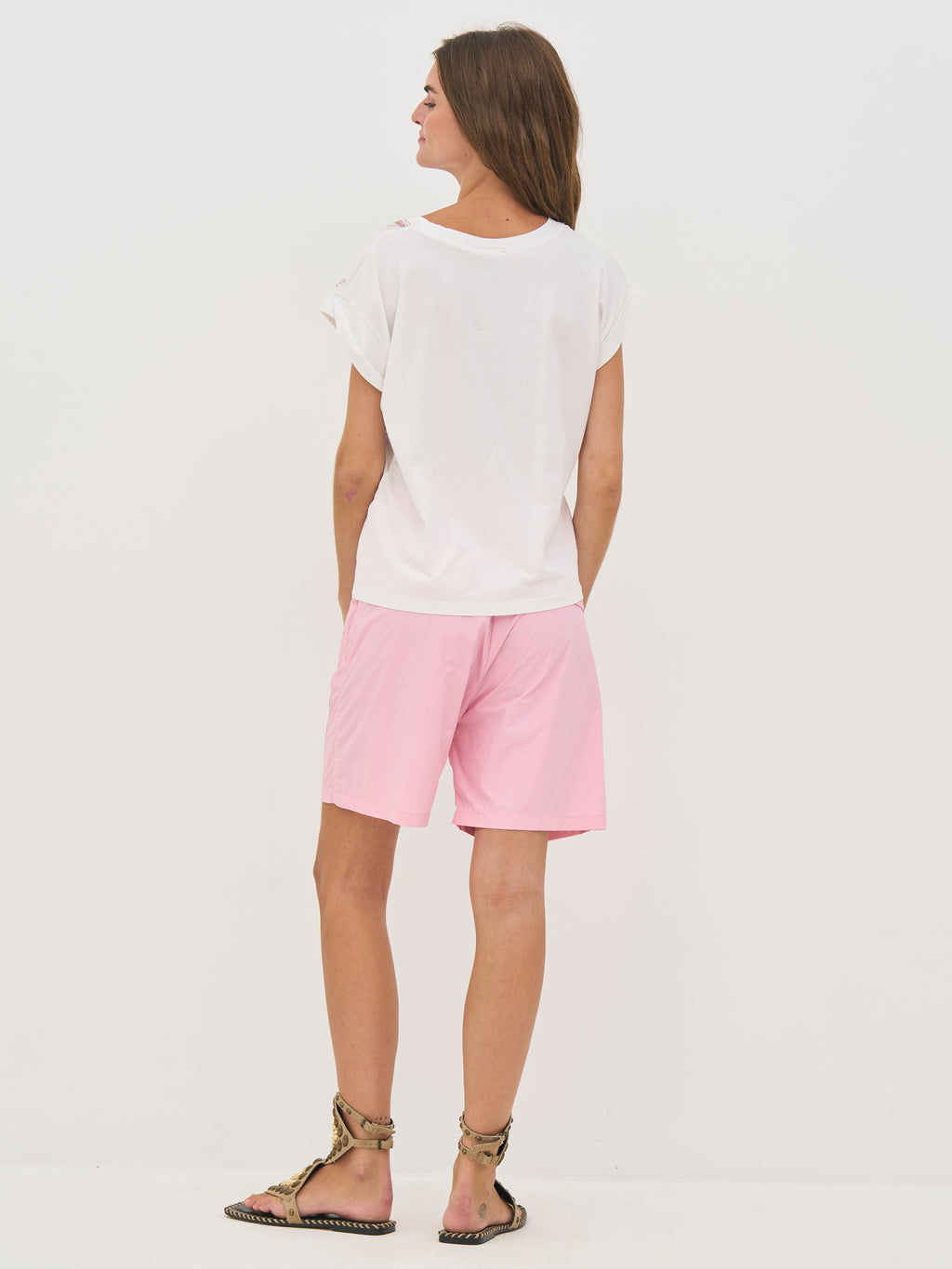 Disse shorts har et let og luftigt udtryk, der gør dem behagelige at have på på varmere dage. De er designet med en lige pasform, som giver en afslappet og moderne silhuet. Den faste talje med D-ring spænde tilfører et funktionelt og markant element, mens de store frontlommer og baglommer med flap understreger det praktiske design. Bagtil er udtrykket holdt enkelt og stilrent.