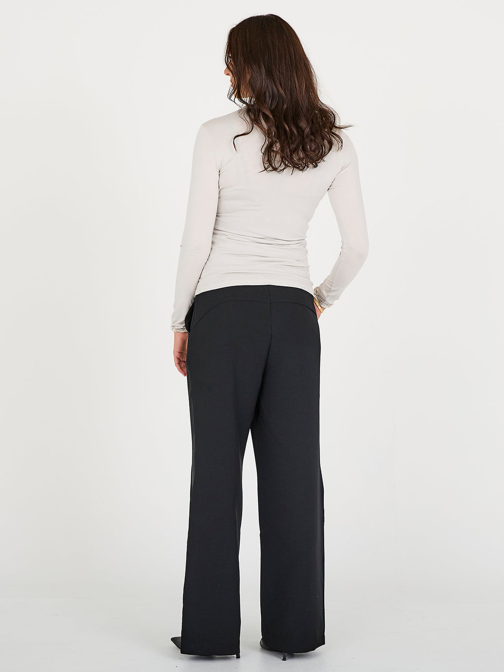 Style den med et par løse bukser og flade sko for et moderne hverdagslook med et feminint præg.
