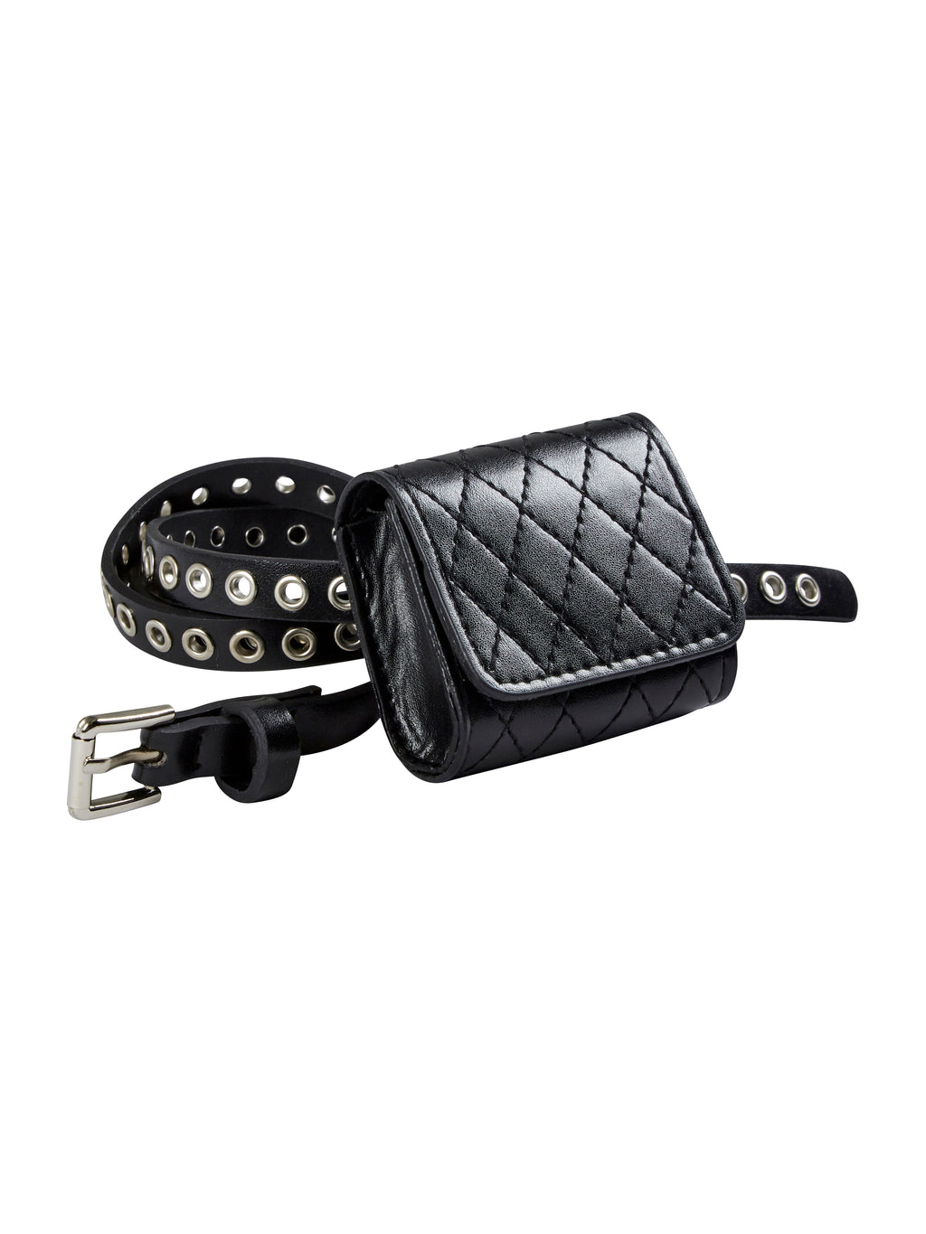 En stilfuld og funktionel detalje til dit outfit – denne lille bæltetaske kombinerer praktisk design med et moderne udtryk. Tasken har et elegant, quiltet mønster og er fastgjort til et justerbart bælte med metaldetaljer og spænde. Den lille lomme er ideel til småting som kort eller nøgler, og lukkes med en flap foran.