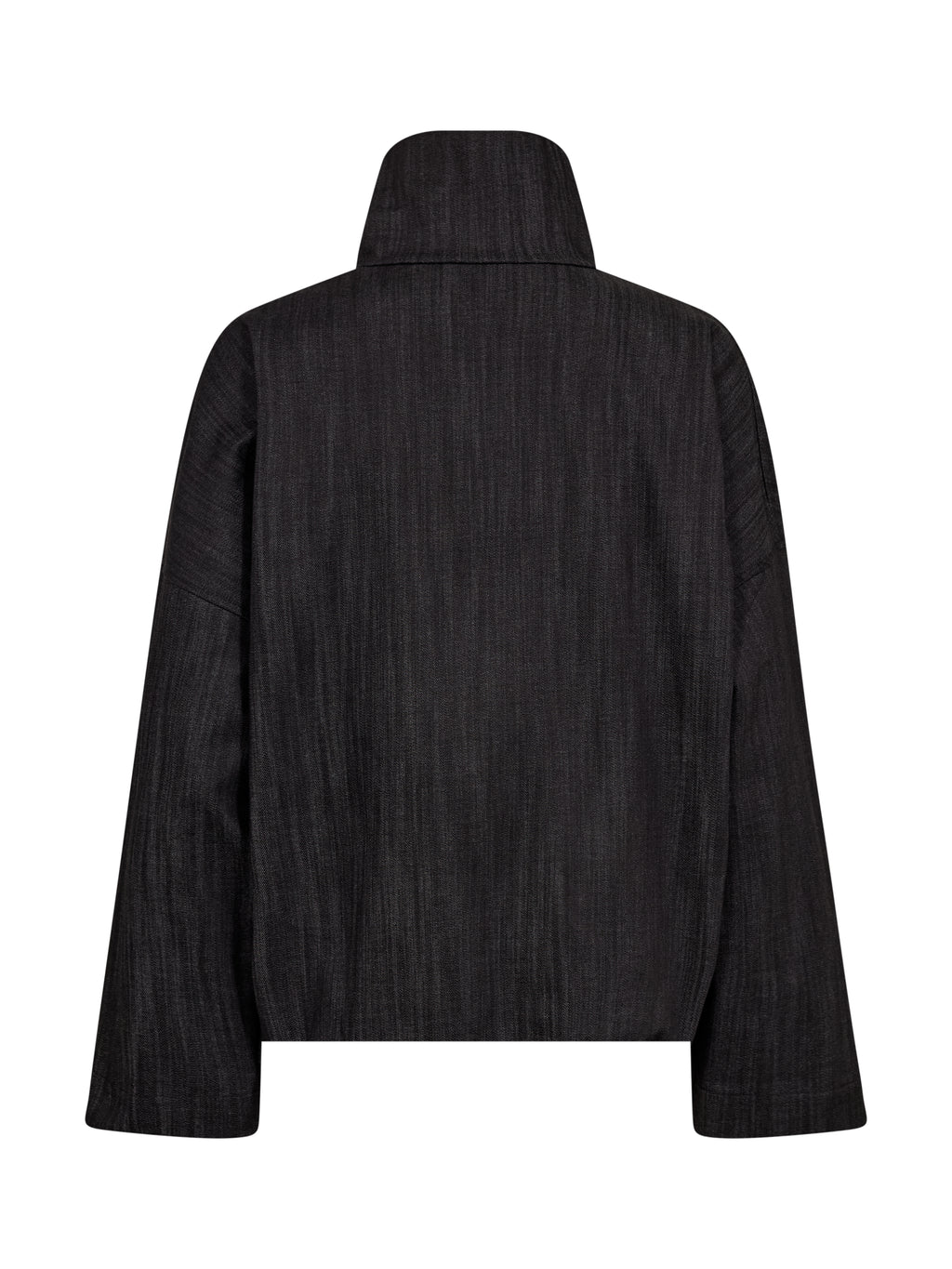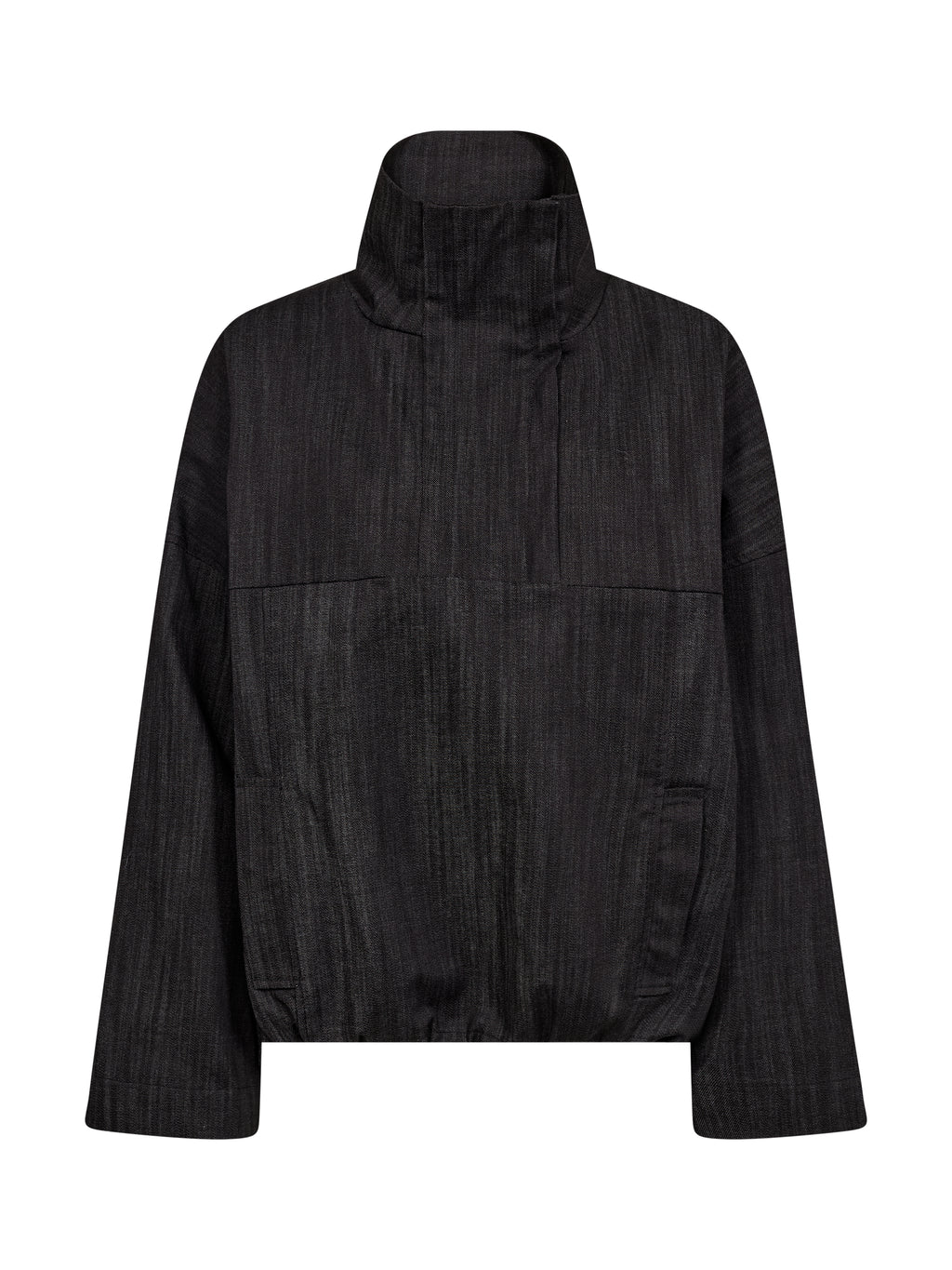 Denne overdel kombinerer et struktureret materiale med et enkelt, men raffineret design. Den har høj krave med kort lynlås, brede ærmer og et let boxy snit, som giver en afslappet og samtidig velklædt silhuet. Bagsiden følger samme enkle udtryk som fronten, hvilket gør den nem at style på tværs af sæsoner.