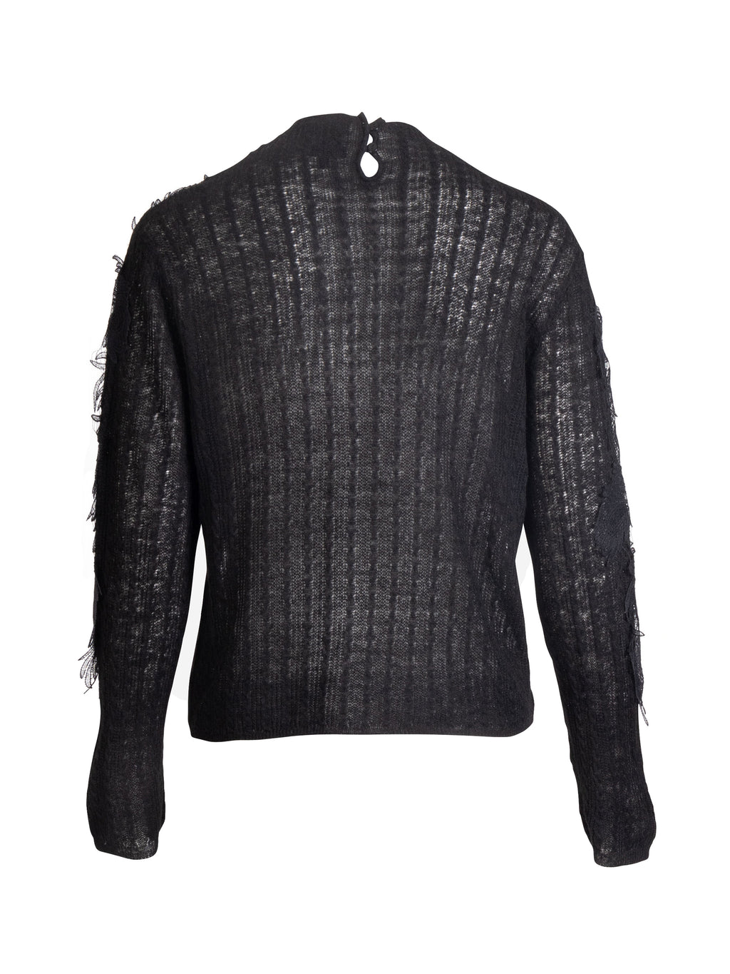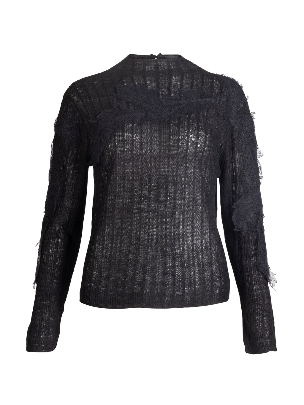 Tilføj et kunstnerisk touch til garderoben med denne strukturerede bluse. Det let gennemsigtige materiale har en lodret vævning, som skaber en fin spil-effekt i stoffet. Blusen er dekoreret med tone-i-tone frynse-detaljer foran og langs ærmerne, hvilket giver en særlig dybde og bevægelse til designet. Den lukkes i nakken med en lille knap og har en enkel rund halsudskæring.