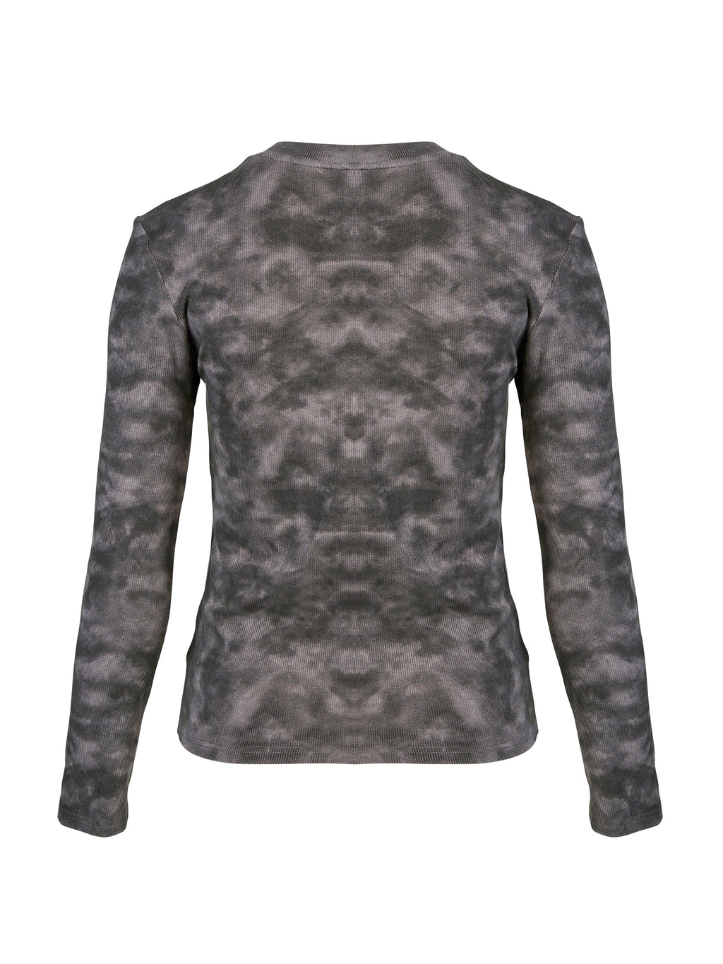 Denne langærmede t-shirt har en tætsiddende pasform og er fremstillet i et blødt, strækbart materiale, der følger kroppens form. Det markante mønster med kvadratiske syninger giver et moderne og grafisk udtryk, som skiller sig ud uden at være for iøjnefaldende. Rund halsudskæring og lange ærmer fuldender det enkle design.