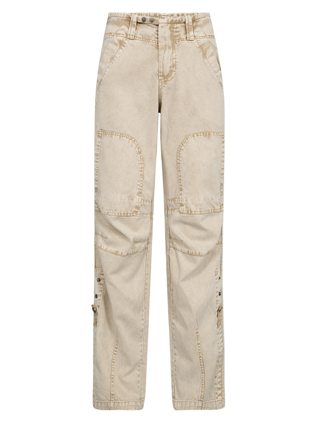 Disse bukser har et råt og afslappet udtryk med lige ben og synlige sømdetaljer, der giver dem karakter. Pasformen er komfortabel med god bevægelsesfrihed, mens detaljerne ved knæ og ben tilfører et mere markant look. Foran er designet funktionelt med lommer, og bagpå er udtrykket mere enkelt. Bukserne er nemme at style og fungerer godt både til hverdag og mere afslappede looks – brug dem med en enkel top, strik eller skjorte.