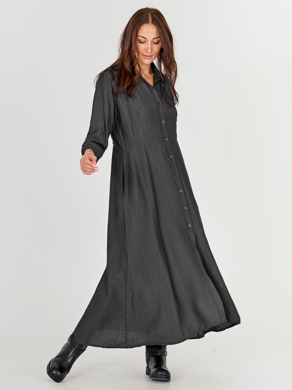 Classic shirt dress design with button-through front