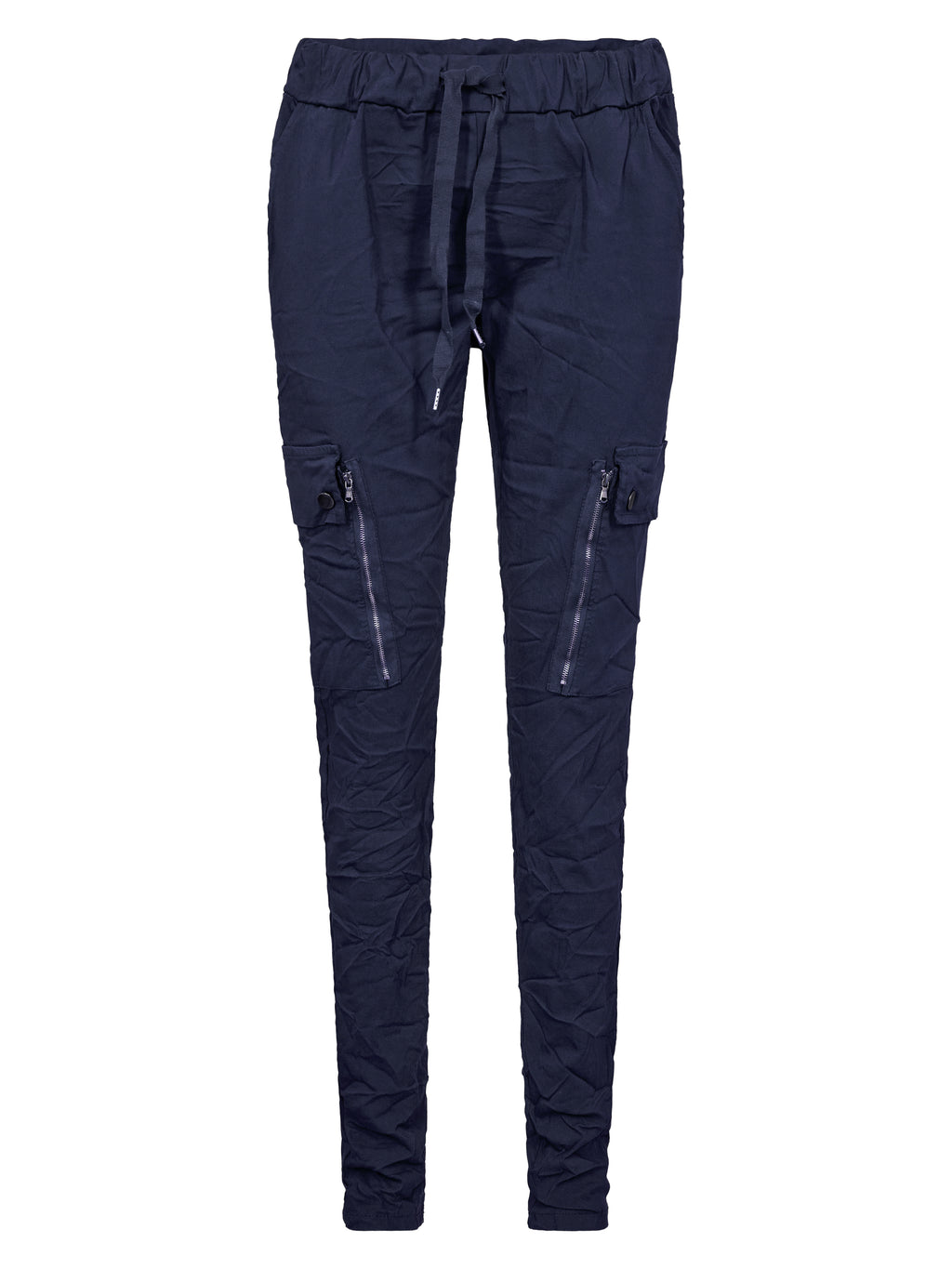 Disse cool bukser er i en lækker bomuldskvalitet med masser af stretch. Bukserne har en let baggy pasform og en elastisk talje med bindebånd, der sørger for en fantastisk komfort. Midt på bukserne er der to store lommer med knapper samt en lang pyntelynlås, som giver en rå detalje.