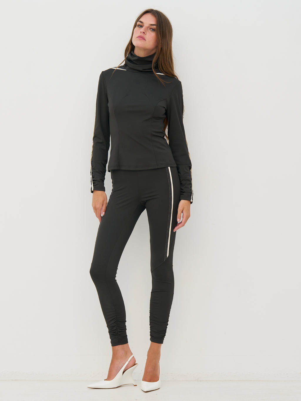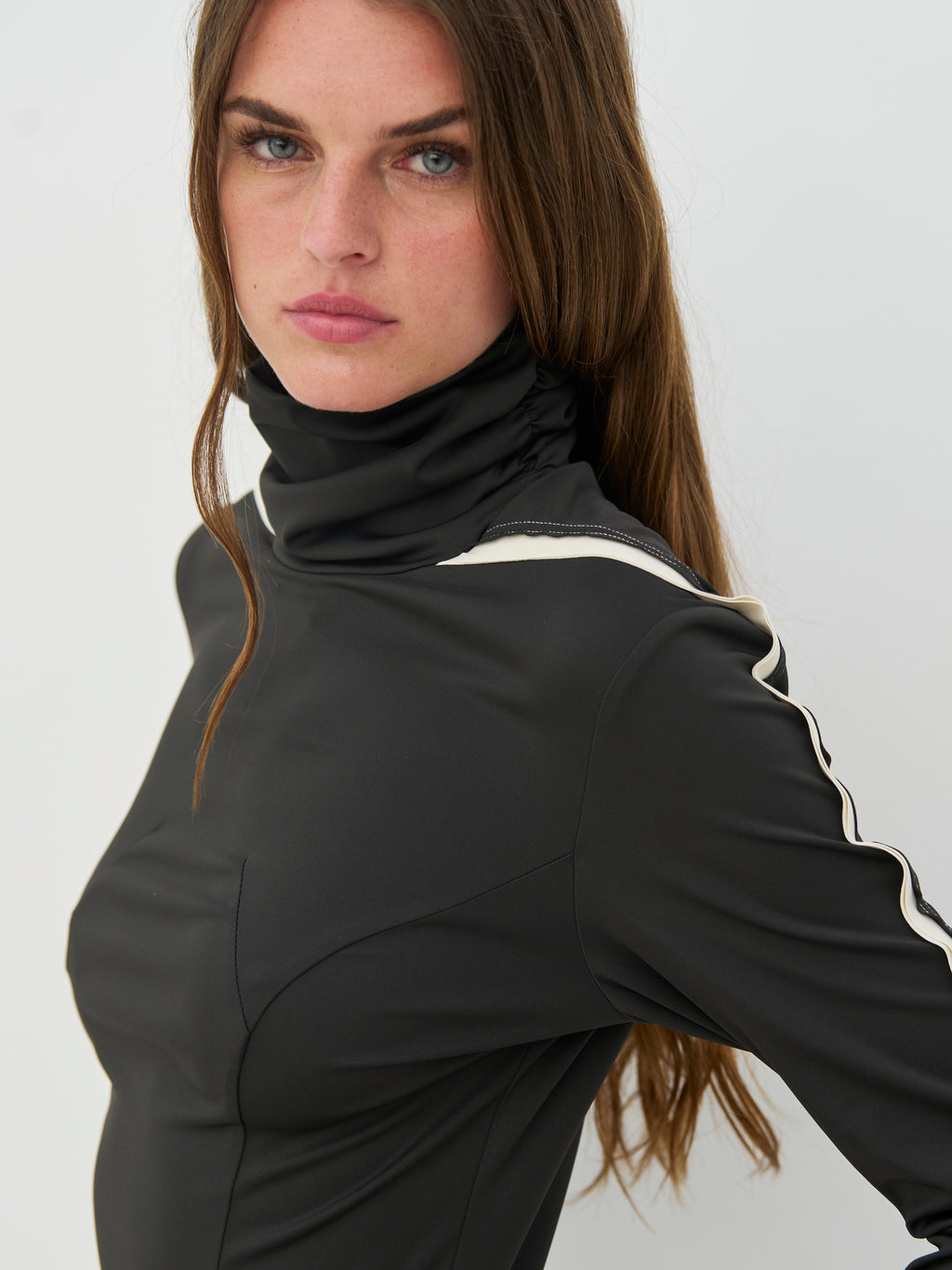 Blusen har en høj krave, der giver et cool og stilrent udtryk. Ærmerne er lavet med en 3D-detalje, som giver et fint løft til det enkle design. Fronten har rene linjer og et glat udtryk, mens bagsiden holdes helt enkel. Style blusen med leggings eller en enkel nederdel for et sporty og cool hverdagslook.