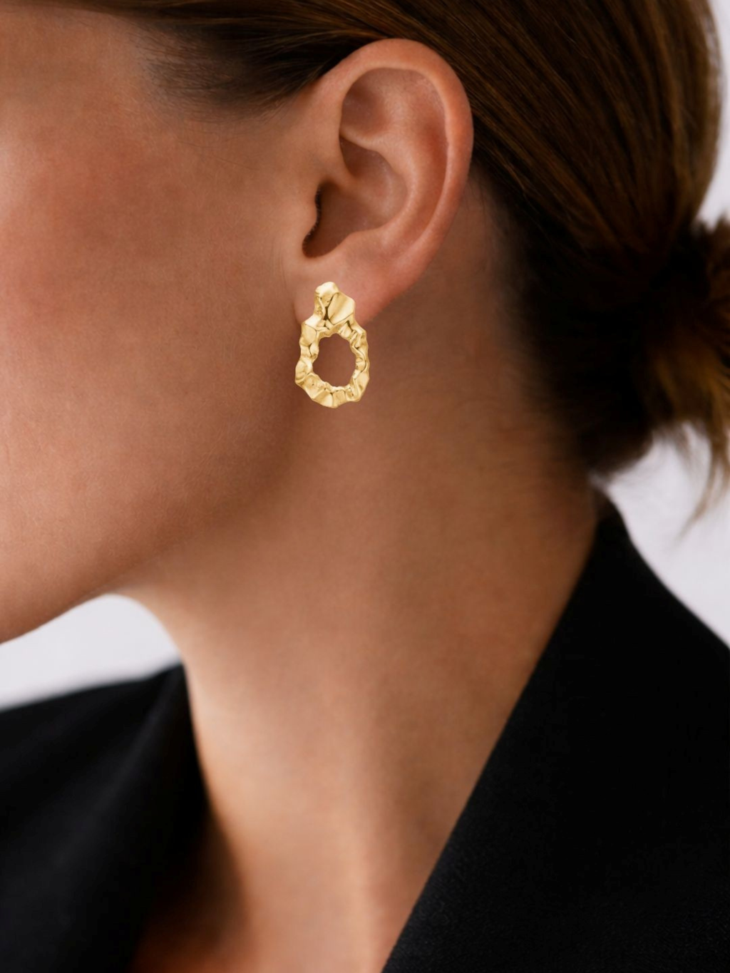Denne ørering har et organisk og kunstnerisk udtryk, formet med bløde, ujævne linjer, der skaber et levende og skulpturelt look. Den åbne silhuet giver et let og moderne præg, som gør smykket nemt at style til både hverdag og fest. En iøjnefaldende detalje, der tilføjer karakter til ethvert outfit – uanset om den bæres alene eller sammen med andre øreringe.