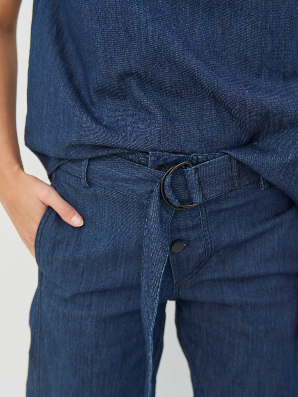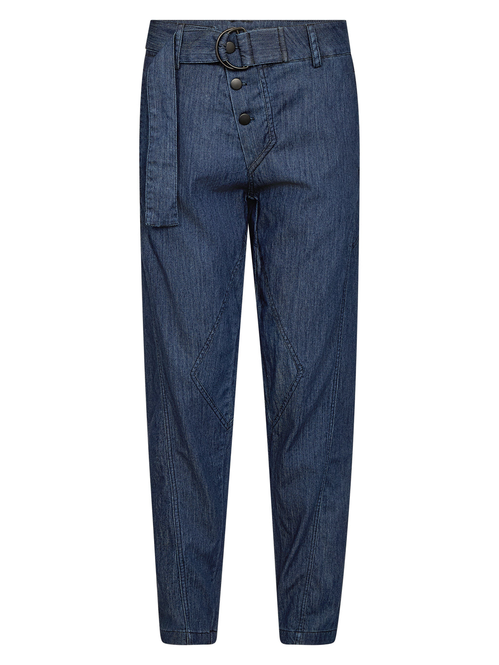 Disse denim bukser har en behagelig pasform med masser af stretch, der gør dem nemme at bevæge sig i hele dagen. Det integrerede bælte fungerer både praktisk og som en cool detalje, der giver bukserne lidt ekstra karakter. En afslappet style, der er let at kombinere med både bløde strik, skjorter og T-shirts.