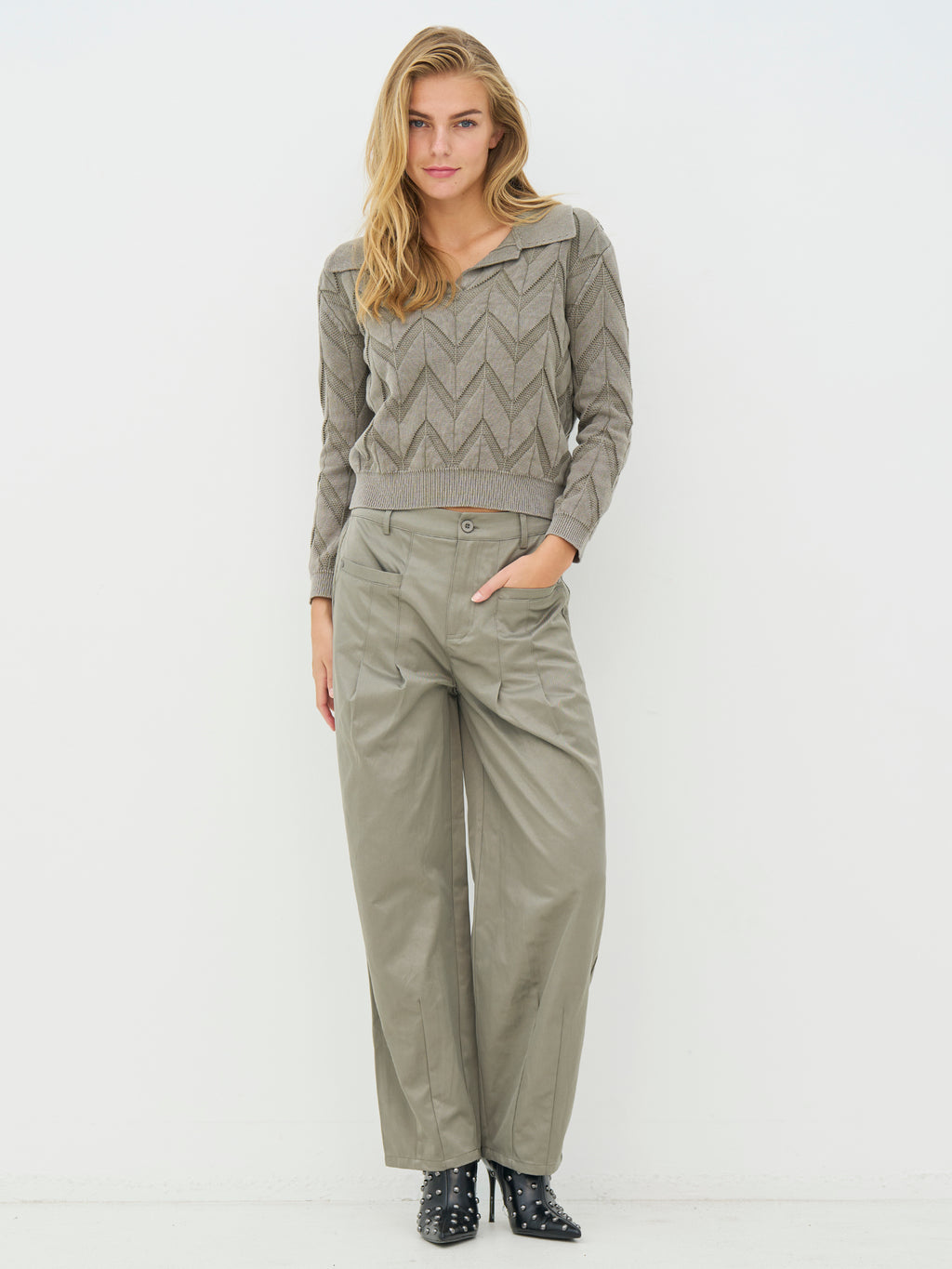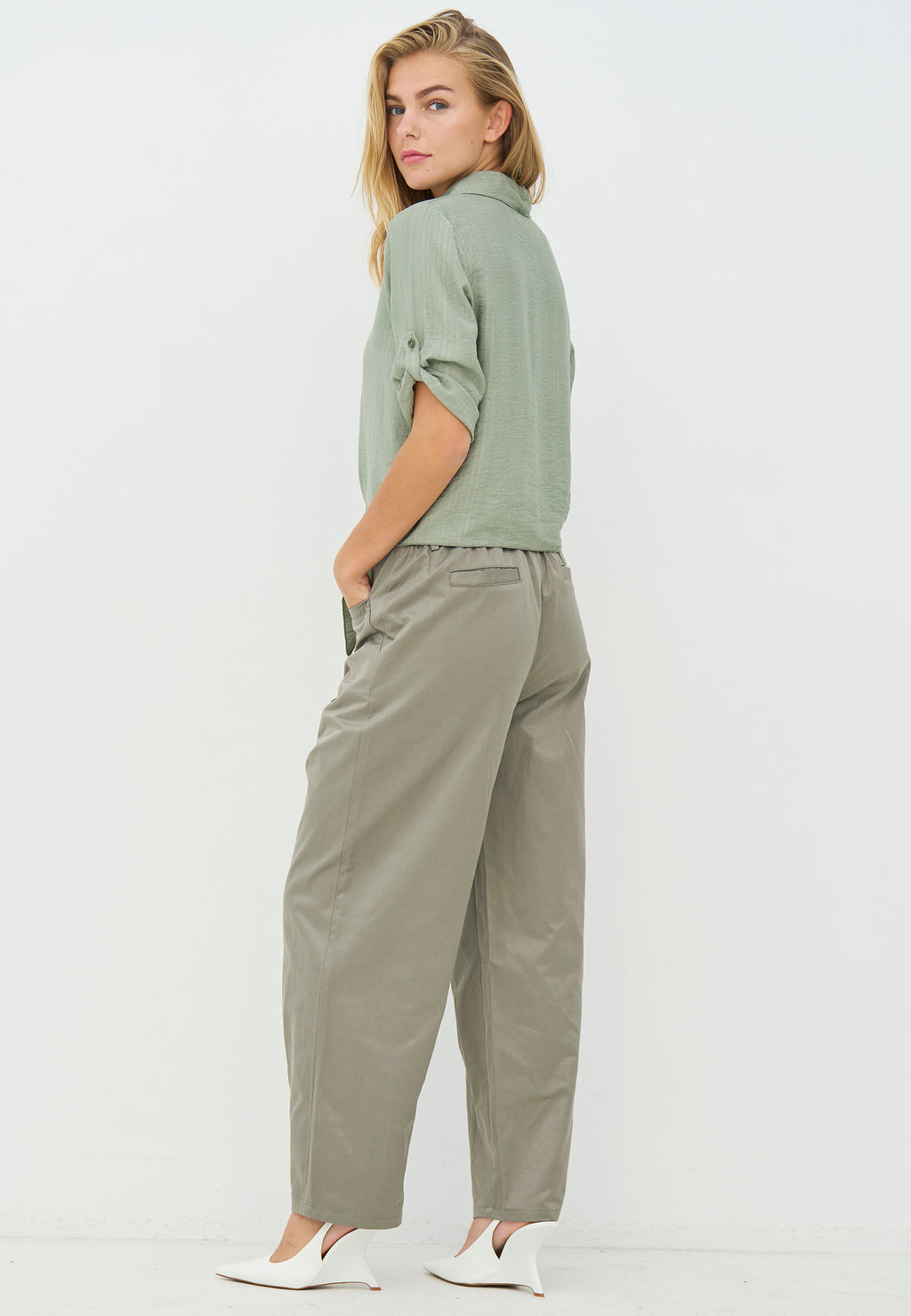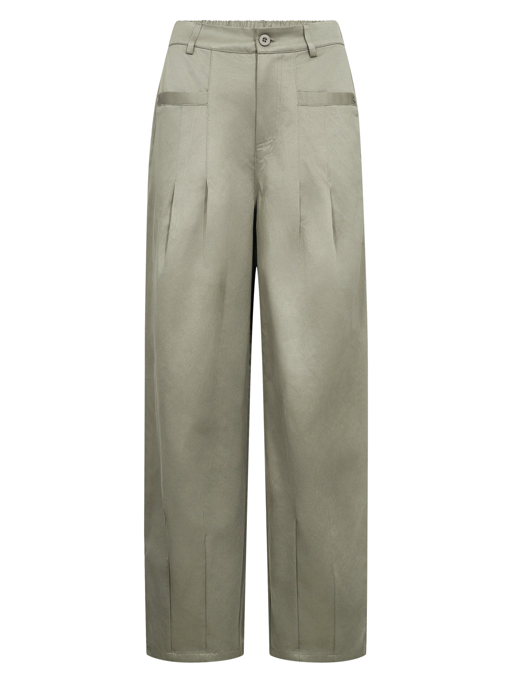 Disse bukser har en afslappet pasform med vidde i benene, som giver et behageligt og ubesværet udtryk. Foran har bukserne fine læg, der skaber form og giver et mere voluminøst look, mens bagsiden er holdt enkel. De skrå lommer gør dem praktiske i hverdagen, og lukningen foran giver et klassisk finish. Style dem med en strik, skjorte eller en let blazer for et afslappet, men velklædt look.