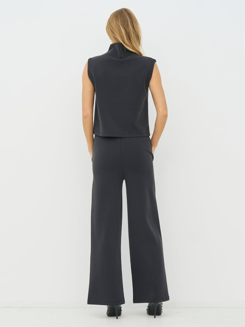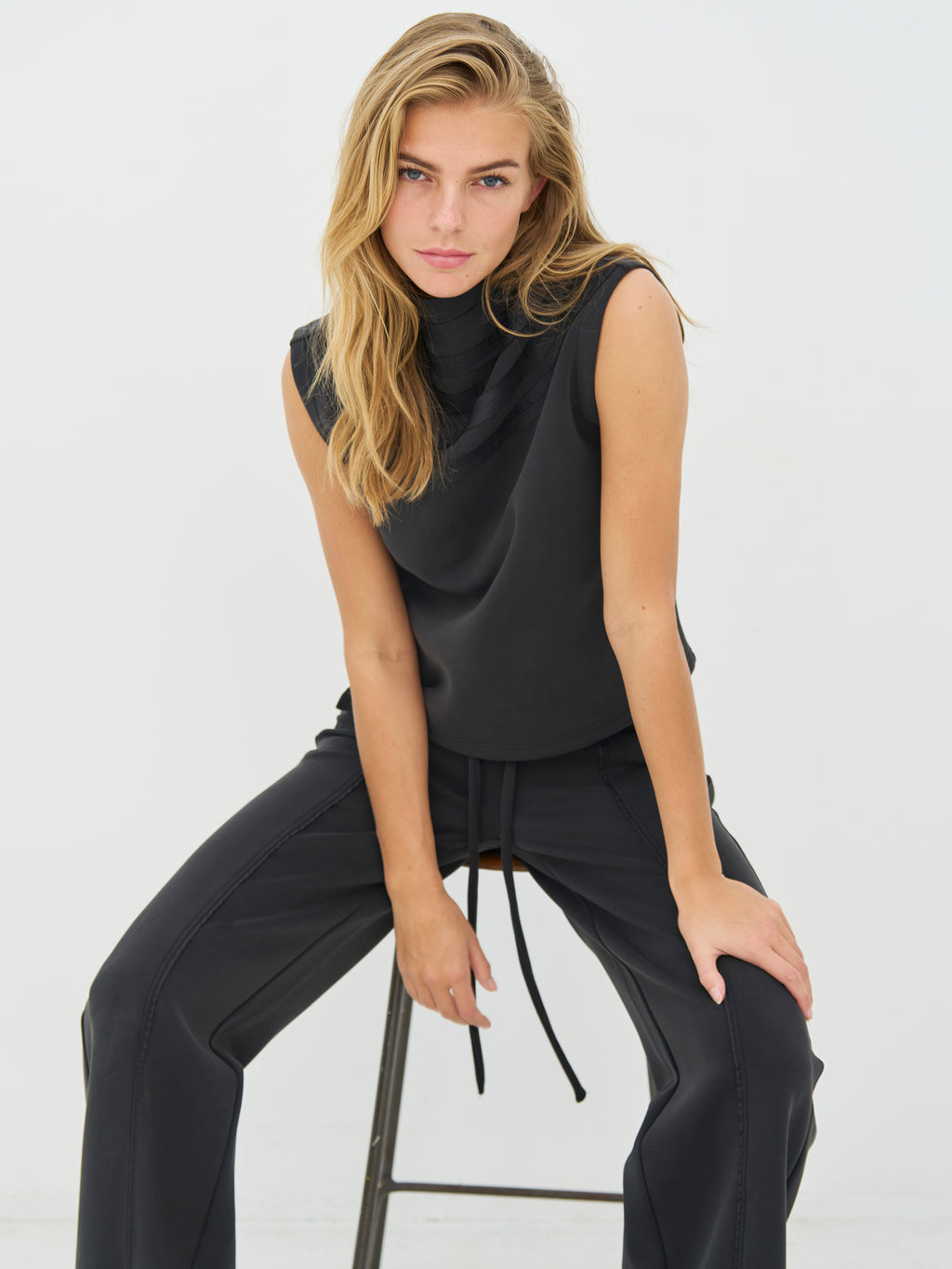 Denne top har et enkelt udtryk med lige pasform og høj hals. Fronten er rolig, mens de diskrete bånddetaljer ved skulderen tilfører lidt struktur og et grafisk twist. Bagsiden er helt enkel og holder udtrykket rent. Style toppen med jakken og bukserne fra Cyra-serien for et cool, gennemført sæt, eller brug den sammen med bukser eller shorts for er afslappet men pænt hverdagslook.