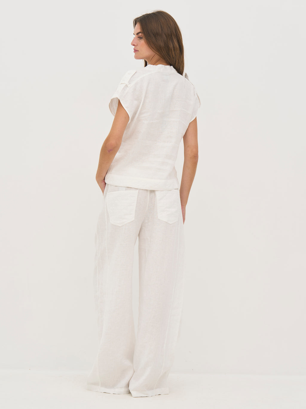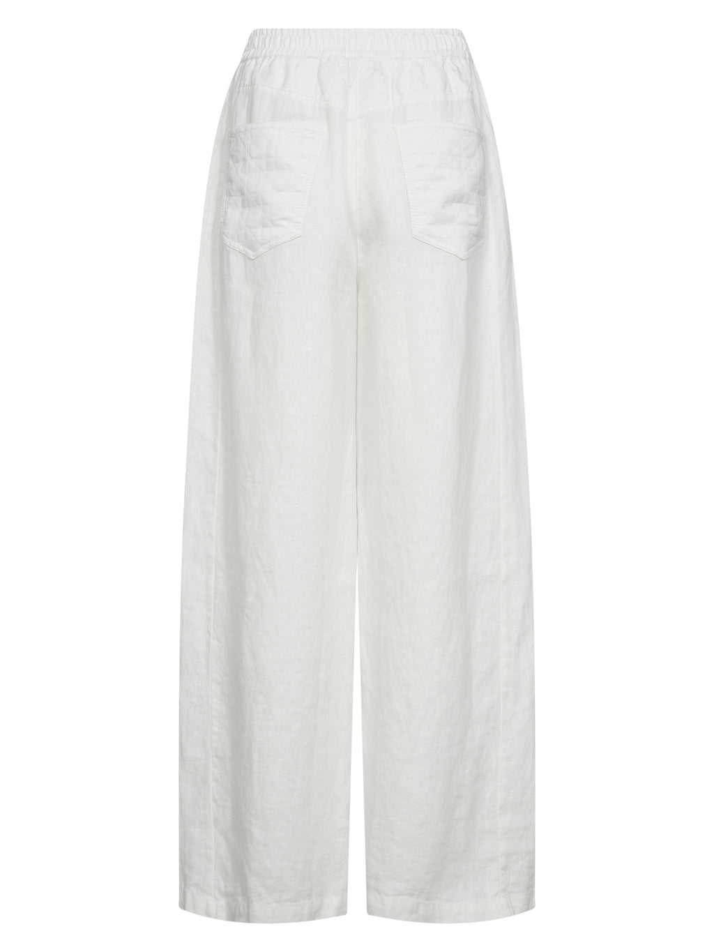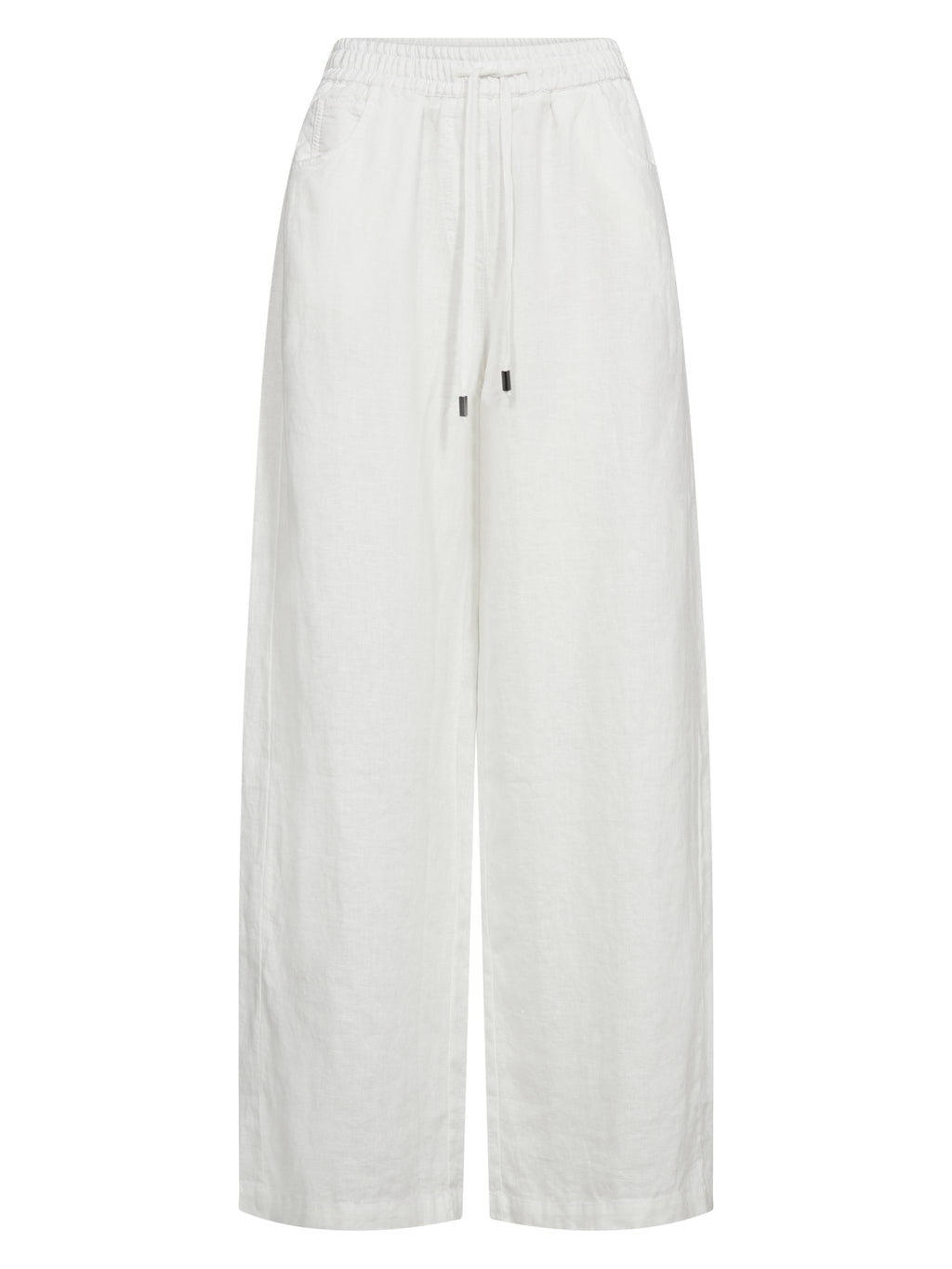 Disse bukser er lavet i hør, som gør dem lette og åndbare – ideelle til varme dage. De har en afslappet pasform med vidde ben, der falder løst og giver god bevægelsesfrihed. Taljen er elastisk og har snøre, så pasformen nemt kan justeres. De diskrete syningsdetaljer tilfører et roligt spil i overfladen, mens bagtil holdes designet enkelt.