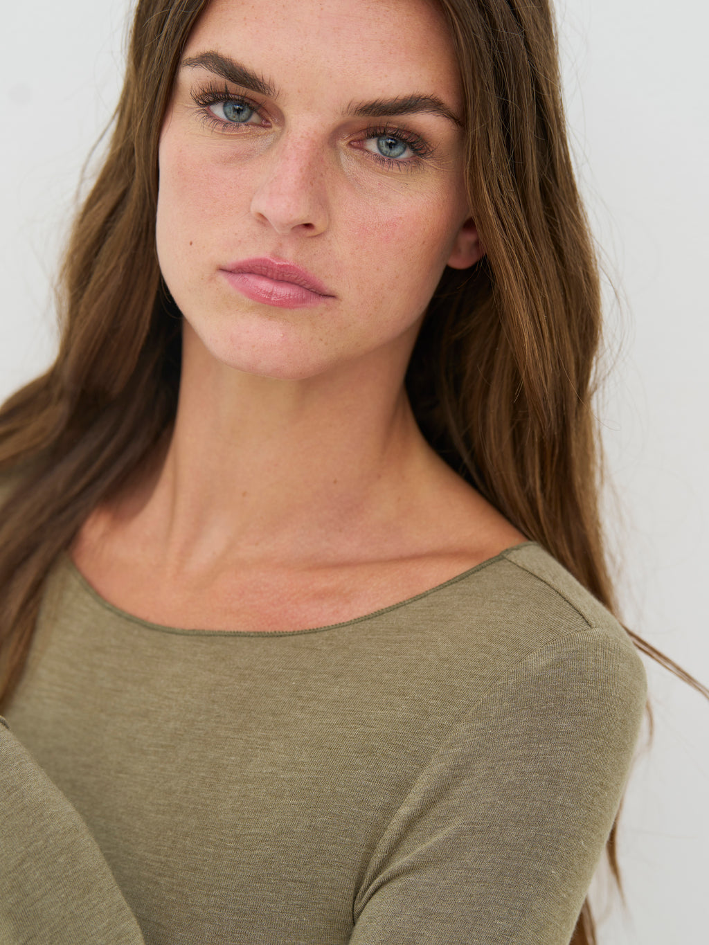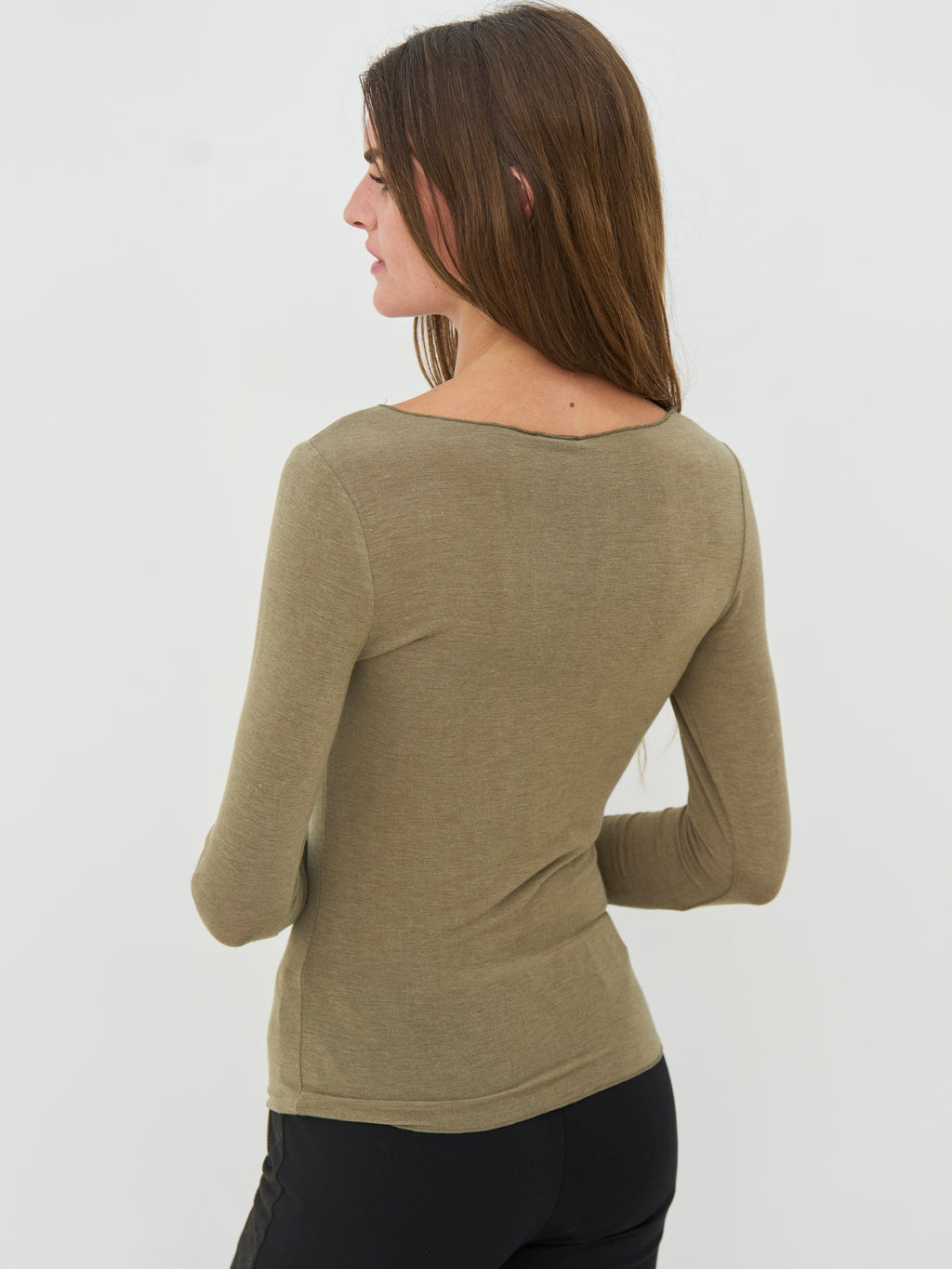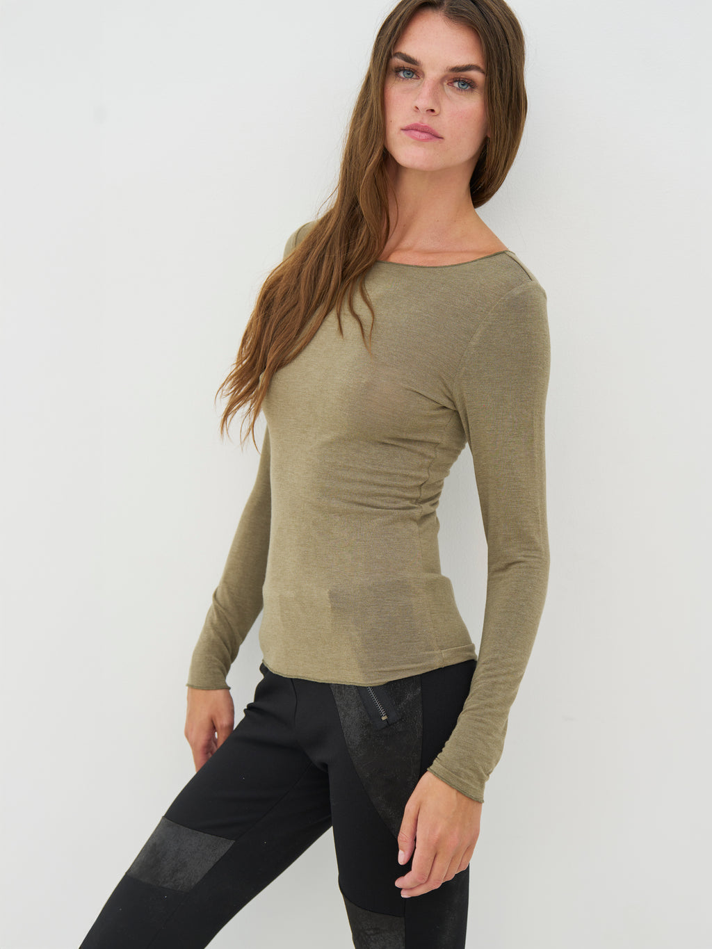 Denne basisbluse har et enkelt og tidløst udtryk med lange ærmer og rund hals. Pasformen er let figursyet og følger kroppen på en behagelig måde. Fronten er holdt plain og uden detaljer, mens bagsiden har samme enkle snit, som gør blusen nem at bruge igen og igen. Den fungerer både alene og som et lag under skjorter, strik eller jakker. Style den med bukser, nederdel eller under en åben cardigan for et roligt og anvendeligt hverdagslook.