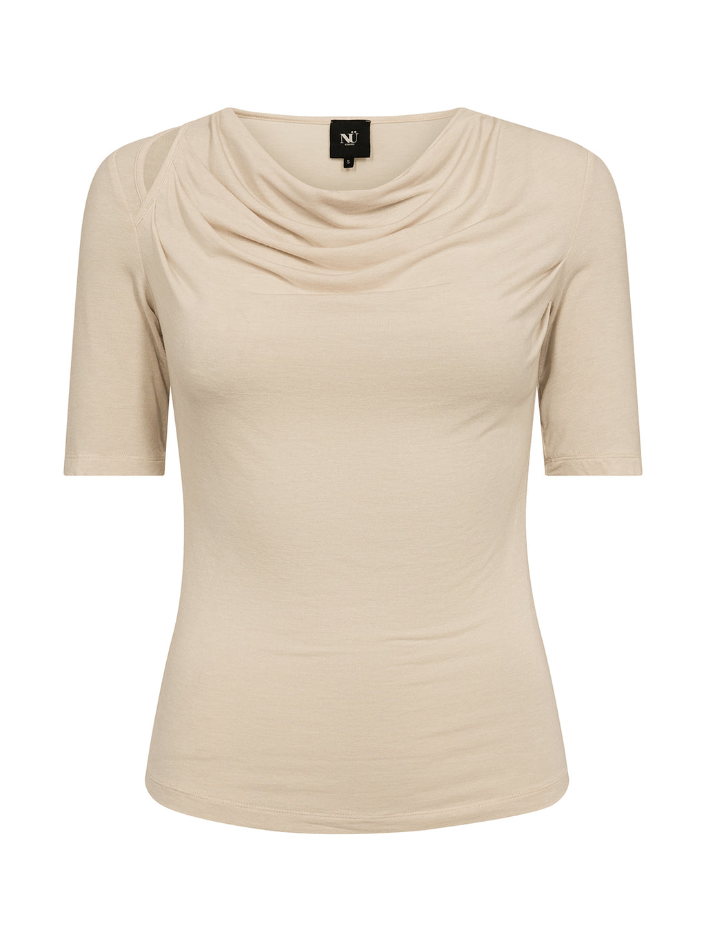 Denne T-shirt har et feminint og afslappet udtryk med bløde draperinger ved halsen, som falder naturligt og giver lidt ekstra spil. Den har korte ærmer og en behagelig pasform, der følger kroppen uden at stramme. Stoffet er let og blødt mod huden, hvilket gør den nem at bruge hele dagen. En sikker favorit, der fungerer lige så godt til hverdag som til mere pæne looks – alt efter hvordan du styler den.