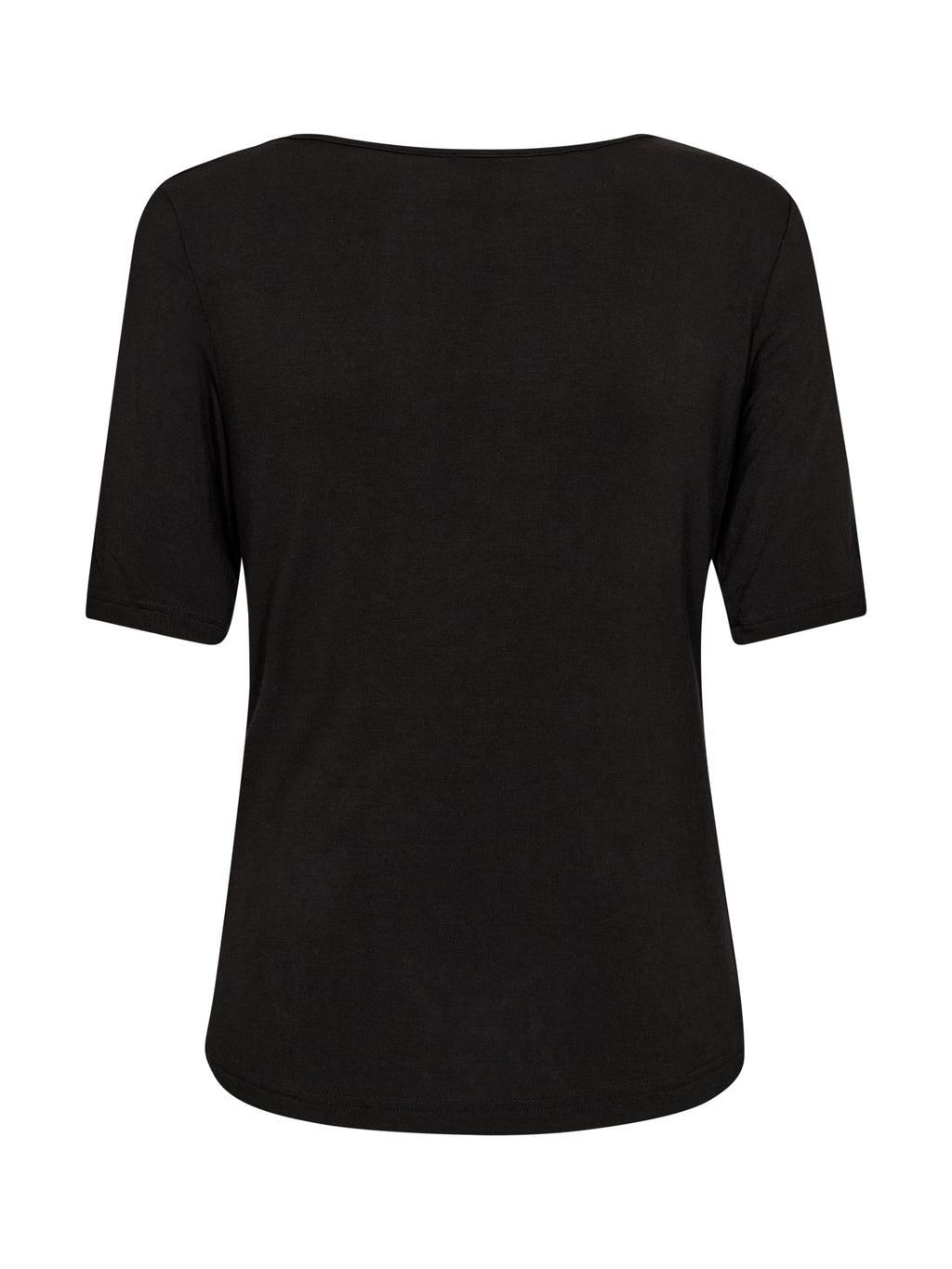 Denne T-shirt har et feminint og afslappet udtryk med bløde draperinger ved halsen, som falder naturligt og giver lidt ekstra spil. Den har korte ærmer og en behagelig pasform, der følger kroppen uden at stramme. Stoffet er let og blødt mod huden, hvilket gør den nem at bruge hele dagen. En sikker favorit, der fungerer lige så godt til hverdag som til mere pæne looks – alt efter hvordan du styler den.
